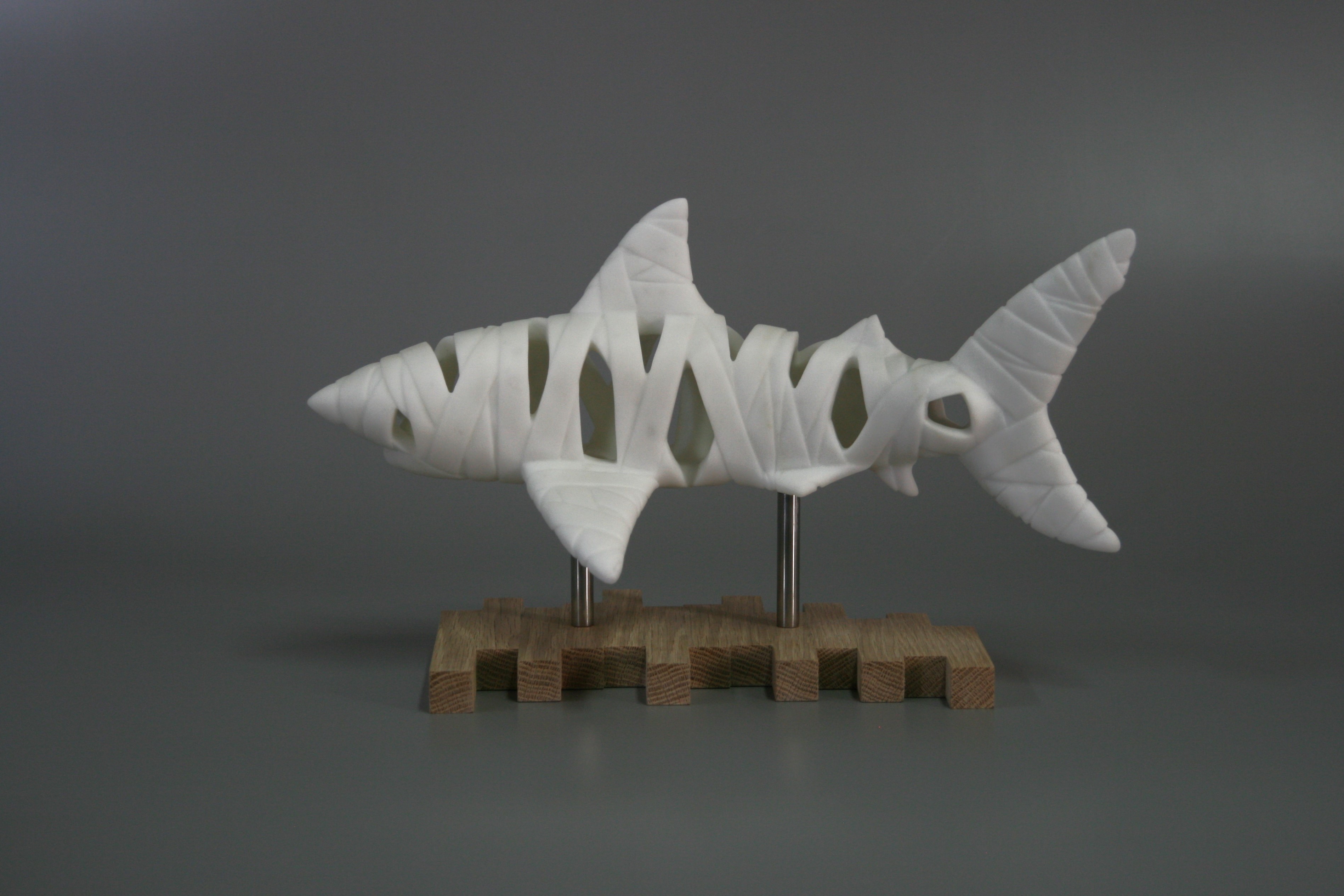 Carrara (Italy) Statuario marble, stainless steel & wood.